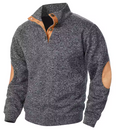 Men’s Jacquard Knit Sweater with Stand Collar and Elbow Patches