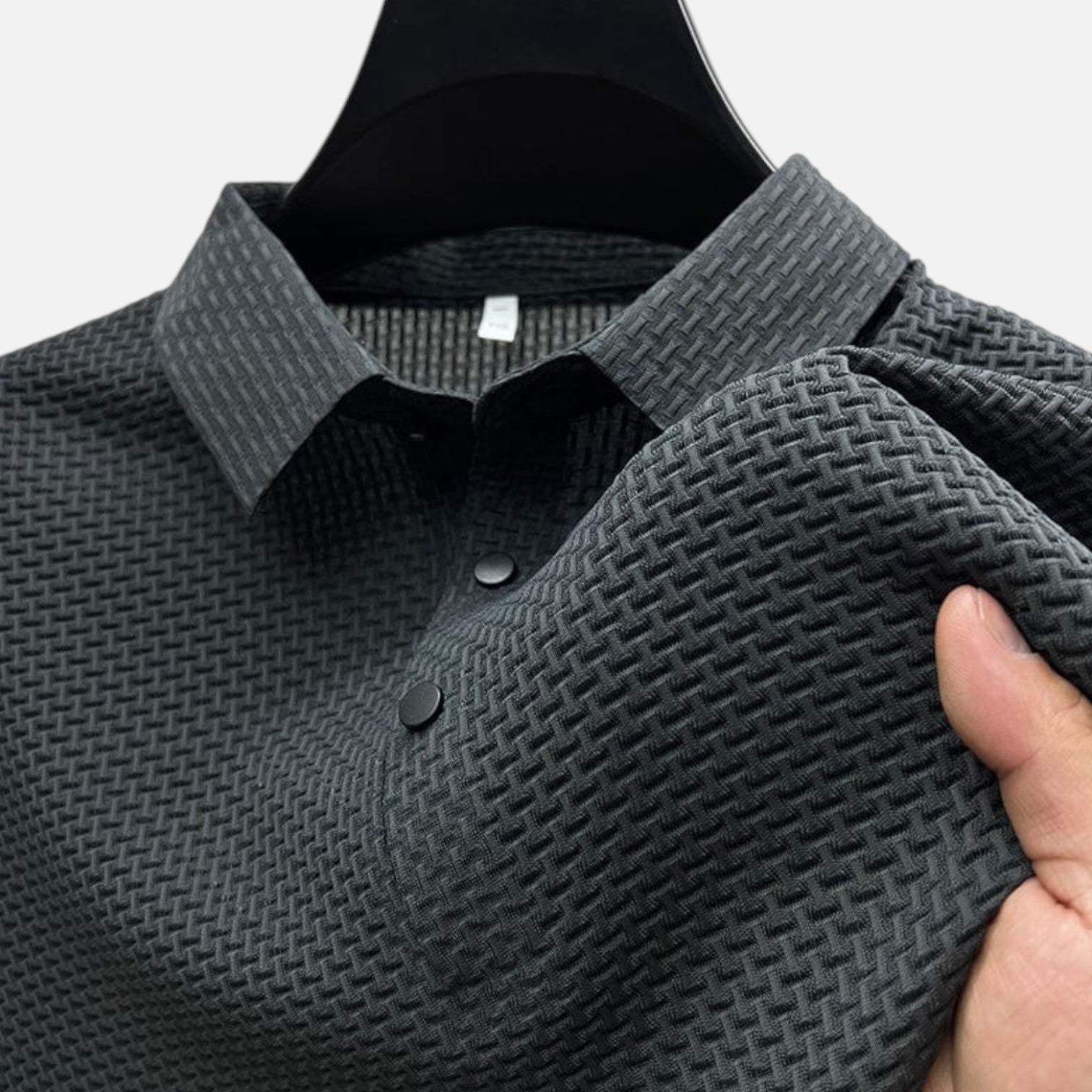 This men’s polo shirt is made from a soft and breathable cotton blend. The model features a classic polo collar with button closure and a regular fit. The fabric is lightweight and durable, making it suitable for everyday wear.